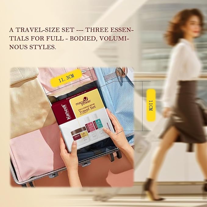 Karseell Maca Power Essence Repair Travel Set – A compact 3-step hair repair system enriched with Maca essence, specially designed for dry and damaged hair. Perfect for travel or trying out the Maca Care System.